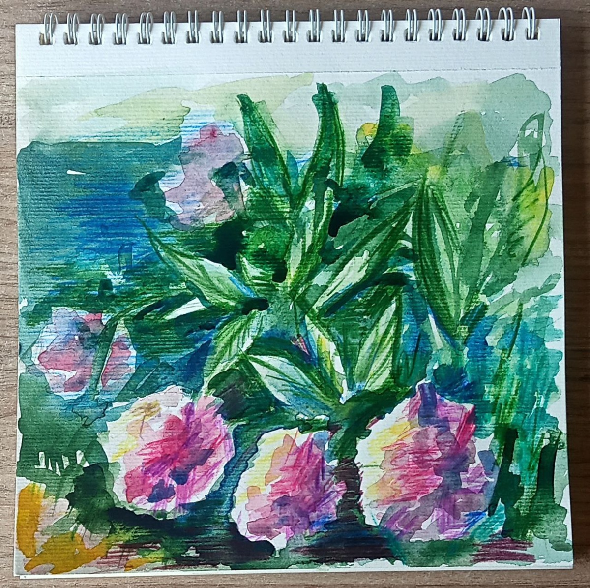 Этюды солнечного дня🌸🌝🎨 Куст пиона и цветущий лук Акварель и цветные карандаши