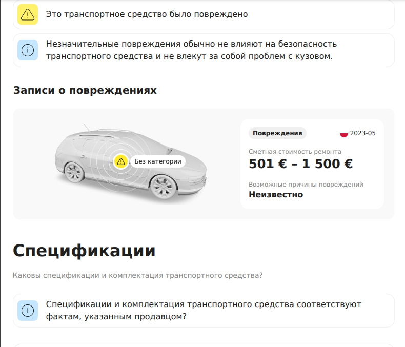 Много наших клиентов нашего Телеграмм бота — t.me/@Data_ViN_PR_bot проверяют авто из Америки и Европы. Нас часто спрашивали — можно ли дополнительно проверить залог/лизинг/ ДТП и др. ---------------------------------------- Мы понимаем, что помимо истории обслуживания и комплектации а/м, это важная и нужная информация при рассмотрении такой важной покупки как авто. Именно для этих целей был добавлен отчет CarVertical Максимально возможное(!) содержание отчёта: ✅ Фотографии при продаже (при наличии). ✅ Записи об угоне, розыске. ✅ Ограничения на использование и владение транспортным средством (финансовый и правовой статус). ✅ Повреждения, ДТП, стоимость ремонта. ✅ Спецификации и оборудование авто. ✅ Хронология — где и когда было зарегистрировано авто. ✅ Это аналог Автотеки только по Европе и Америке и многим другим странам. ✅ Стоимость отчета у нас дешевле примерно в 2 раза, чем на сайте поставщика и Вам не нужно думать о санкциях и запрете оплаты картами РФ. ✅ Если данных нет — мы как в