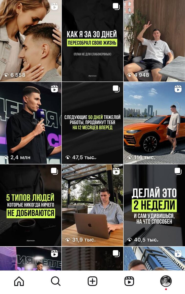 Зачем мне нужен контент, который совсем не набирает просмотры? Думаю, что многие из вас заметили, что у меня есть рилс, которые набирают миллионы просмотров, а есть те, которые набирают всего несколько тысяч. 🃏Раскрываю карты зачем и почему так! Мы создаем несколько форматов контента: который залетит и принесет подписчиков, и который прогреет текущую аудиторию Вот как раз тот контент, который не залетает - он нацелен на прогрев и сделан в формате экспертного контента. Именно такие рил в привлекают мне большее количество заявок на мои услуги или образовательные курсы. Для чего это вам👇🏼 1. Сегментировать рилсы под разные цели — прирост аудитории или продающие смыслы. 2. Понять, что даже при 200-300 просмотрах рилс можно собирать заявки и делать продажи! Вот как раз этому я и учу на своих курсах😉