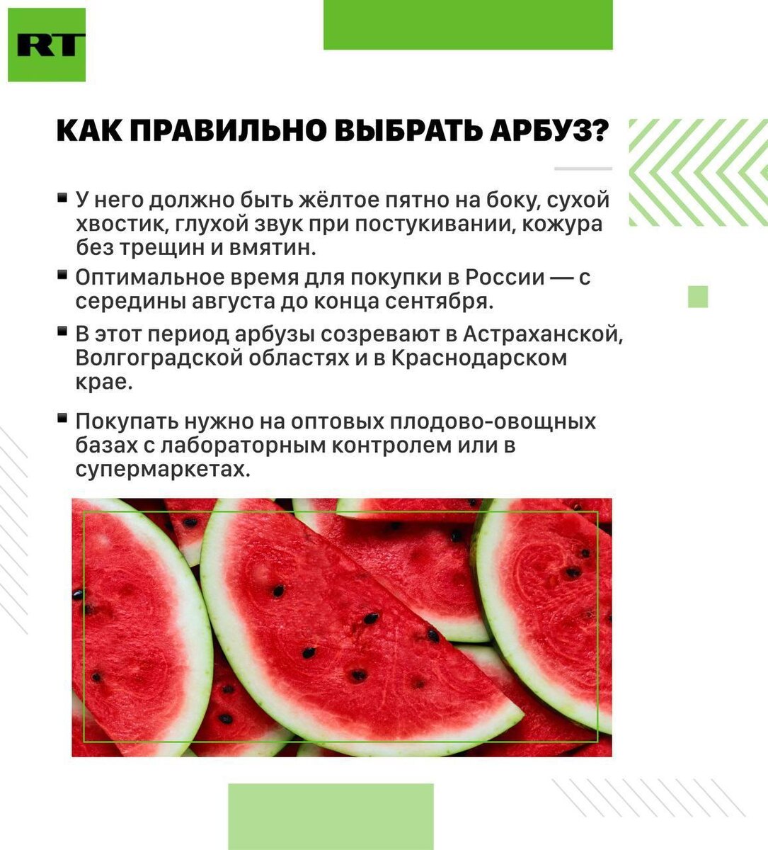 Ранними арбузами можно отравиться, предупредила в разговоре с RT эксперт Асият Абдуллаева. Когда их покупать и на что обращать внимание — на графике ☝️Поделитесь с друзьями.