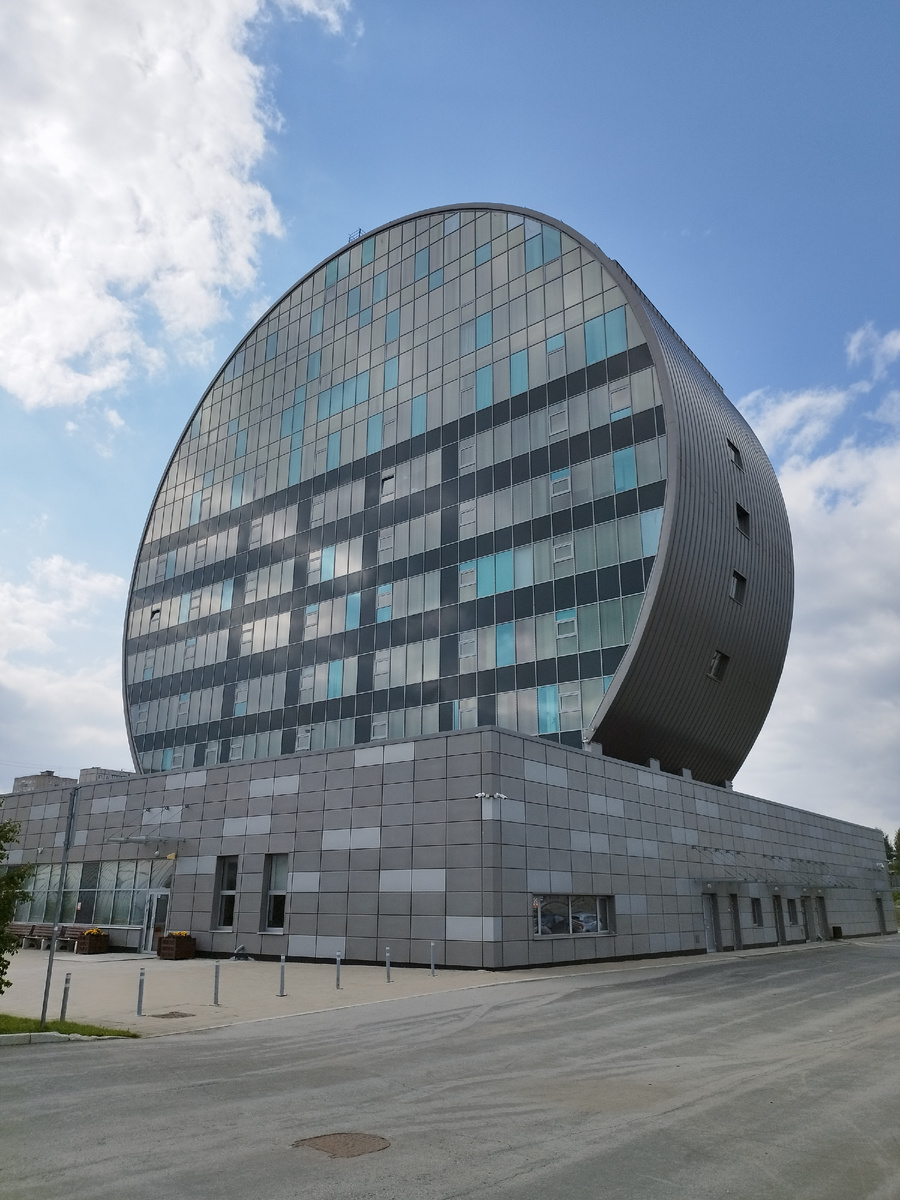 Первоуральск - небольшой город недалеко от Екатеринбурга. Классический суровый уральский промышленный город. Но есть там одно место, которое ярко выделяется на фоне серых бетонных зданий. Инновационный культурный центр Первоуральска Огромная "шайба" возвышается на территории сквера. Получается, что вокруг этой огромной "шайбы", фактически, ничего нет - от этого здание выглядит еще более интересно, монументально. А в этой "шайбе" нас интересовал музей. Да-да, там есть музей. Небольшой, но классный. Музейная экспозиция посвящена осмыслению уникального феномена мировой истории и культуры, название которому в 1920-х гг. дал уральский ученый П.С. Богословский. Этот музей довольно интересный и необычный. Вся экспозиция, по-сути, составляет единое целое, хоть и разделена на зоны. Суть экспозиции заключается в "центровании" Свердловской области - а вокруг развивается и живет горнозаводской край. Кстати, карта подсвечена, разговаривает. Города начинаются с заводов... Кончено, экспозиция начин