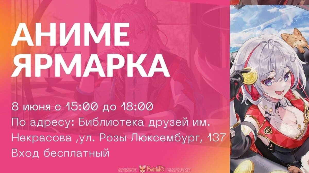 🥰АРМАВИР!🥰 8 ИЮНЯ к тебе возвращается KimiTo — и на этот раз всё ещё эпичнее! 🤗 Совместно с Библиотекой друзей им. Некрасова мы запускаем ультра-анимешную волну: 🌟2D-ПАТИ 🌟 🗿Где?— Армавир, ул. Розы Люксембург, 137 🗿Когда?— 8 июня 🗿Начинаем тусить в 13:00 🛍 Аниме-маркет от KimiTo — с 15:00 🗿Финал — в 18:00 🗿 Вход? Бесплатный! Абсолютно! 🤩Что будет: 🎮 Ретрогейм-зона — как в 90-х, только с вайбом 2D 🫧 Аниме-квиз от библиотеки — проверь свой уровень отаку 💖 Лекция про косплей от крутой гостьи RuRuAlice 🕺 Аниме-опенинги и танцы — ты знаешь их наизусть 🛒 МАРКЕТ ОТ KIMITO — мерч, арт, фигурки, постеры, сюрпризы! 🥰 Дружелюбная атмосфера, эмоции и новые друзья 🌸 Приходи один или с отрядом 🌸 Будешь в косплее — круто 🌸 Без него — тоже обнимем! 💌Подписывайся на нас: @kimito и @animearmavir АРМАВИР, ТЫ ГОТОВ? Ставь 🔥 Отправляемся в 2D-мир уже 8 ИЮНЯ!