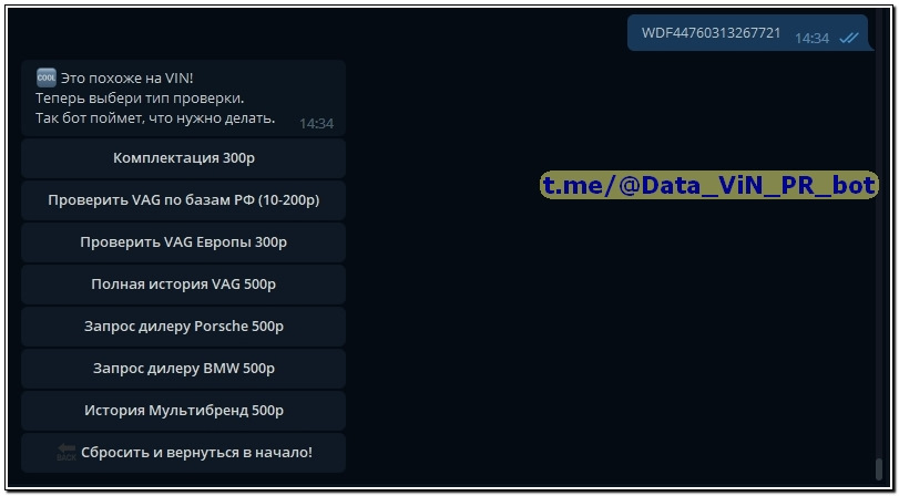 Для автомобилей Mercedes-Benz и Smart ! Доступна выгрузка комплектации и истории обслуживания из БАЗ ОФИЦИАЛЬНЫХ ДИЛЕРОВ Для всех стран СНГ, Европы, Америки, Азии, России. Добавлена возможность проверки G-Class «Гелик» Для их проверки нужен специальный доступ ( система EVA) Телеграмм бот — t.me/@Data_ViN_PR_bot или поиском в тг Data_ViN_PR_bot Полный Отчёт по истории обслуживания ответит на вопросы : — Что делал ОД с машиной ранее? (необходимо при покупке автомобилей б/у) — Для проверки честности продавца по у или ремонтам. — В каком объёме обслуживался. — Были ли крупные ремонты-ДВС, КП, кузова. — Каждый второй пригнанный автомобиль из-за рубежа имеет смотанный пробег. Примеры отчетов которые Вы получите запросив информацию в нашем боте. 1.Комплектация — Mercedes-Benz (vagvin.ru/static/mercedes_equipment.pdf) 2.История обсл-я DSR отчёт Mercedes-Benz (vagvin.ru/static/mb_hist1.pdf) 3.История обсл-я EVA отчёт Mercedes-Benz (vagvin.ru/static/mers_eva.pdf) 4. Дату производства автомобиля.