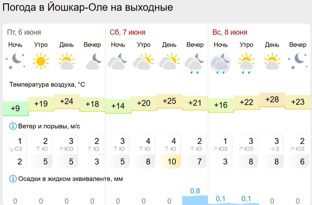 🌦В Марий Эл в воскресенье потеплеет до +28 градусов