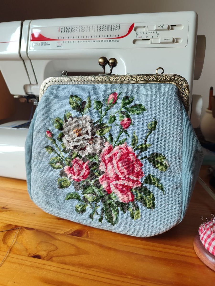 ~Здравствуйте, милые женщины 🪡🌿🩵 Завершаю сегодня сумочку. #сумочкасвышивкой #винтажныйстиль