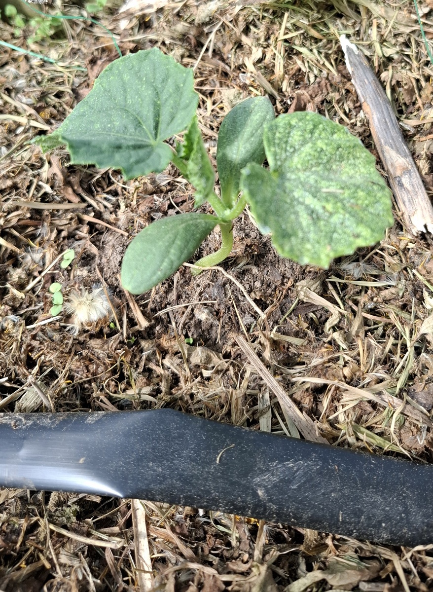 А сегодня уже хорошая плеть. У арбузов я удаляю пасынки, пока листья не сомкнулись. Вообще, они пока не все одинаковые, есть и маленькие, и пара вообще в семядолях - я их досевала позже. Вот арбузов много не бывает!