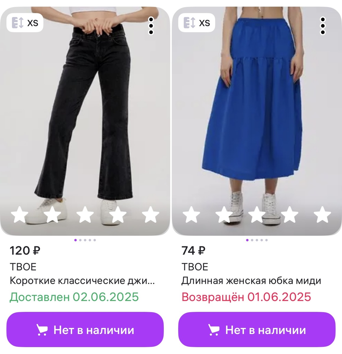 Здравствуйте, постоянные читатели и гости моего блога! Сегодня небольшой обзор покупки на Wildberries, по традиционно невероятным ценам. Бренд Твоё, время от времени, радует покупателей своей щедростью, предлагая большой ассортимент товаров по каким-то невероятно низким ценам. Конечно же, находками я быстро делилась в своём Telegram, надеюсь, Вам тоже удалось удачно приобрести парочку обновок. Показываю, что купила я. Джинсы, артикул: 172915626 Цена: 120₽. [Интереса ради заказывала ещё юбку, но она оказалась забавной, объёмной, мне не подошла]. А вот джинсы очень даже приличные. Плотный хлопок, классический чёрный цвет. Фасон расклешённый, думаю, можно очень даже здорово стилизовать в повседневной жизни. Следующие два лота - ну просто разрыв сердечка. Брюки-клёш в рубчик, с разрезами по бокам. Артикул: 140302107 Цена: 96₽. Отлично тянутся, даже самый маленький размер XS сидит очень комфортно, единственное - мне чуть великовата длина, но это не страшно. На ценнике 1699₽. Извините, но мы
