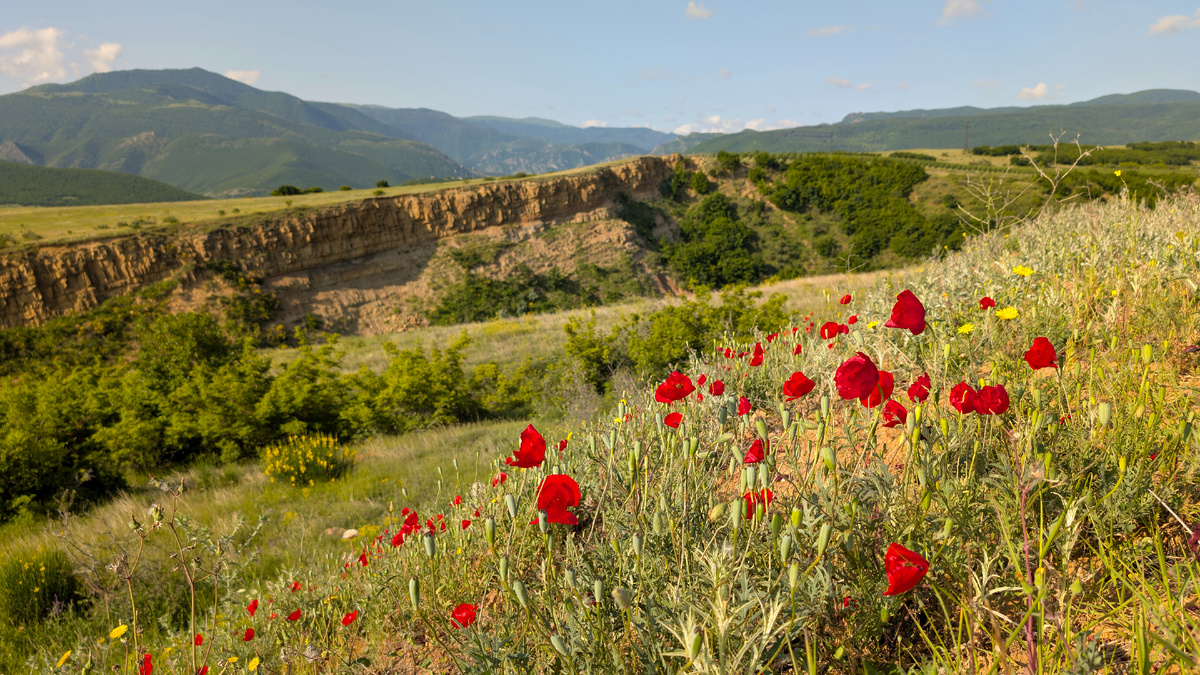 Проснувшись утром, я обнаружил рядом с палаткой прекрасные раскрывшиеся маки. Налюбовавшись этим замечательным явлением, я направляюсь в один из старейших городов Грузии — Гори. Первое, что решаю посетить, — это средневековая цитадель Горисцихе. Которая впервые упоминается в письменных источниках в XIII веке. Крепость расположена на высоком утёсе на слиянии рек Большая Лиахви и Куры и когда то имела важное стратегическое значение. В XVI веке османы захватили крепость чтобы принудить к повиновению Тбилиси. В 1598 году грузины осадили крепость, но безрезультатно; в 1599 году они симулировали ослабление осады во время Великого поста, перед тем как начать внезапную атаку ночью, чтобы вернуть цитадель. Крепость продолжала переходить из рук в руки и дальше. После присоединения Грузии к Российской империи в 1801 году в крепости разместился русский гренадерский батальон. Единственный, кого встречаю на вершине, — это Бэн. Он прилетел в Грузию на две недели из, как он сам сказал, Объедин