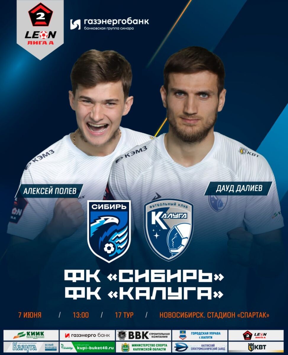 Стартовал матч 17-го тура Второй лиги Дивизион А группы серебро между командами “Сибирь” и “Калуга”. Стартовый состав ФК “Сибирь”: Киселев, Запалацкий, Редькович, Ерохин, Караев, Марухин, Шмаков, Лаптев, Иванов, Фольмер, Кобялко. Стартовый состав ФК “Калуга”: Исмагилов, Полев, Калистратов, Петровский, Ершов, Ушаков, Югалдин, Стрельник, Асайдулин, Кузин, Максимчук. Обслуживает матч бригада арбитров: Судья: Труханович Роман (Барнаул), 1-ый помощник: Сменчугов Дмитрий (Красноярск), 2-ой помощник: Ли Егор (Москва), Резервный судья: Петренко Артем (Новосибирск), Делегат: Киселев Руслан Юрьевич (Томск), Инспектор: Гешко Виктор (Омск). Ссылка на трансляцию