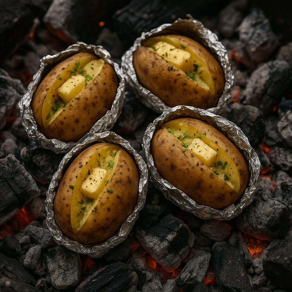 Есть блюда, которые невозможно забыть. Они ассоциируются с запахом дыма, смехом у костра и уютными вечерами на природе. Картошка, запечённая в фольге на углях — как раз из таких. Это простое, но удивительно вкусное блюдо, которое возвращает нас в летние походы и дачные ужины. Сегодня я расскажу, как приготовить её идеально — с мягкой серединкой, поджаристой корочкой и тем самым вкусом, за который мы её так любим. Фольга защищает картофель от прямого жара и помогает равномерно пропечься внутри. Она удерживает влагу, не давая клубню пересохнуть. А ещё с фольгой удобно: минимум грязи и максимум аромата. Правильно завернутая картошка сохраняет соки и легко чистится даже на природе. Ингредиенты на 4 порции: Дополнительно: хорошее настроение, живой огонь и немного терпения. Если вы готовите картошку на даче, разожгите костёр заранее — за 40–50 минут до начала приготовления. Идеальные угли — когда дрова уже прогорели, но сохраняют жар, покрыты белым пеплом, а пламени почти нет. Совет: если