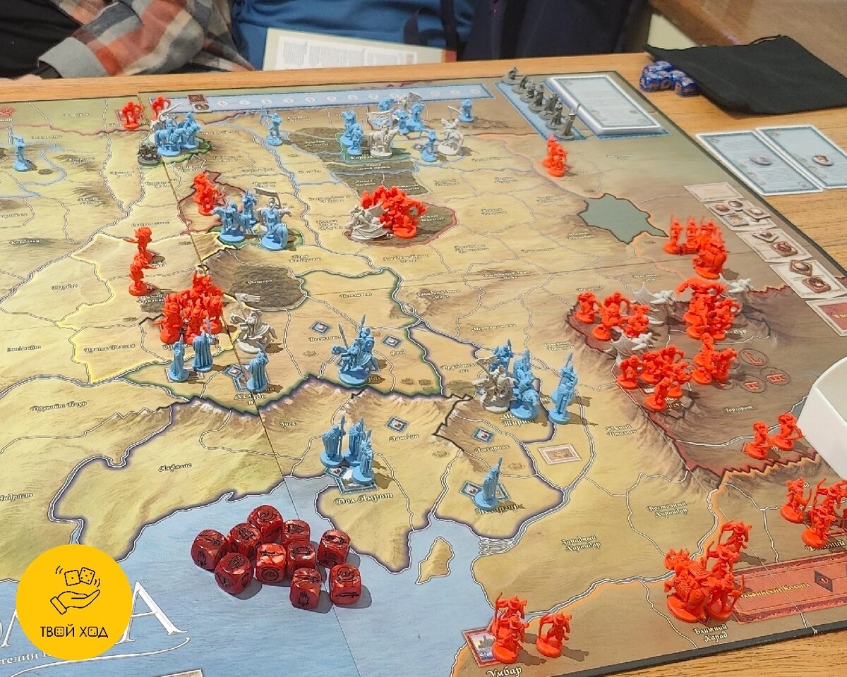 Если вы мечтали оказаться в сердце великой битвы за Средиземье и изменить ход легендарной истории — эта игра для вас. «Война Кольца» — это эпическая стратегия на двоих, где один игрок управляет силами Тьмы, а другой — Свободными Народами. 📦 Что внутри: - Карта Средиземья — огромная и атмосферная. Особенно, если играть на плеймате. - Сотни фигурок: армии, герои, Назгулы, жетоны и т.д. - Карты событий и персонажей - Уникальные кубики действий 🎲 Как играется: Каждый ход игрок бросает специальные кубики, которые определяют доступные действия: движение, сражения, найм войск, события и т.д. Силы Тьмы наступают массами орков и троллей, осаждая крепости и стремясь уничтожить силы добра. Свободные Народы же балансируют между защитой и тем, чтобы помочь Братству Кольца добраться до Ородруина и уничтожить Кольцо Всевластия. Партия длится 2–4 часа, и каждый ход — это выбор между риском и надеждой. ✅ Плюсы: - Атмосфера «Властелина Колец» — чувствуется в каждой карте и механике - Огромная