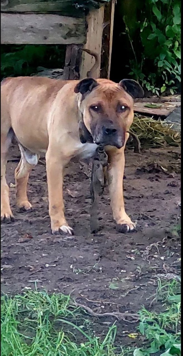 Собака агрессивная ( возможно потому что на цепи) , поэтому транспортировать в клинику придётся под транком.