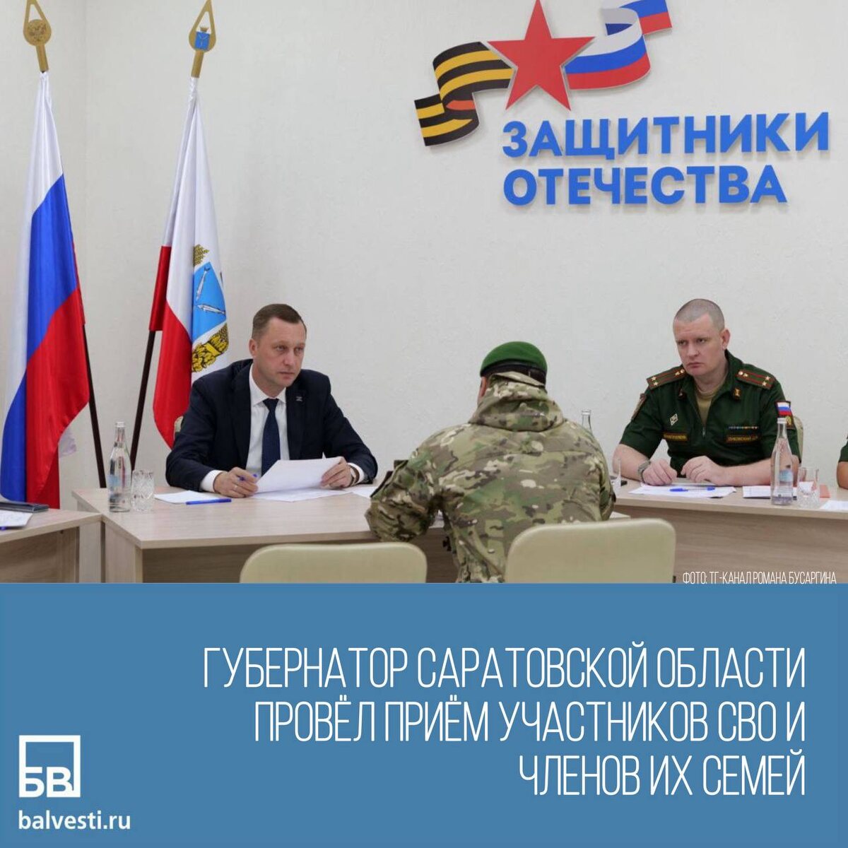 Сегодня, 7 июня, губернатор Саратовской области Роман Бусаргин провёл традиционный приём участников СВО и членов их семей. С различными вопросами на приём обратились почти 30 человек. Об этом Роман Бусаргин рассказал в своих социальных сетях: «В основном просьбы касались помощи в оформлении документов, получении выплат, проведении медицинского обследования после ранения. К решению подключили все профильные ведомства. Ветеран СВО попросил оказать содействие в отправке гуманитарной помощи его сослуживцам. Оформим соответствующую заявку при формировании следующей партии. Пообщались с другим ветераном боевых действий. Мужчина после службы планирует реализовать себя в других направлениях. Проговорили с ним, что поможем с трудоустройством, исходя из его пожеланий. Для этого сейчас во всех кадровых центрах региона открыты специальные окна. Специалисты сопровождают военнослужащих и помогают им в подборе интересующих вакансий и дальнейшем оформлении документов для работы. Сегодня личные