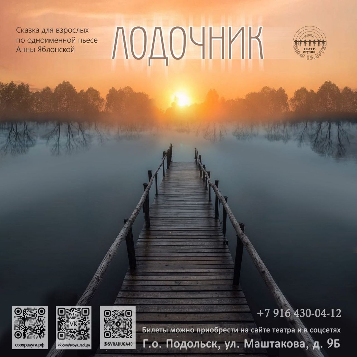 ✨ Спектакль "ЛОДОЧНИК" 🚣 🗓️8 и 15 июня в 18:00 Новый спектакль ❗ 🎬Режиссер-постановщик - Максим Метельников Режиссер-педагог - з. а. РФ Карина Дымонт 👉Наш спектакль затрагивает вечные темы: прощение, страх, принятие, понятия судьбы и веры. Это пронзительная драма о том, что никогда не поздно начать жизнь с чистого листа, а любовь порой может быть сильнее даже смерти. 🎫 https://iframeab-pre9910.intickets.ru/event/60550598/ 🎫https://iframeab-pre9910.intickets.ru/event/60662453/ 🚫 Возраст: 16+ 🏢 Муниципальный театр - студия "Своя радуга" 📍 г. Подольск, ул. Маштакова, д. 9 Б (1 подъезд, 3 этаж) ✅ Мероприятия Подольск https://dzen.ru/id/66ed500f7b5671493eca3fd6 http://vk.com/podolsk_events http://dzen.ru/podolsk_events