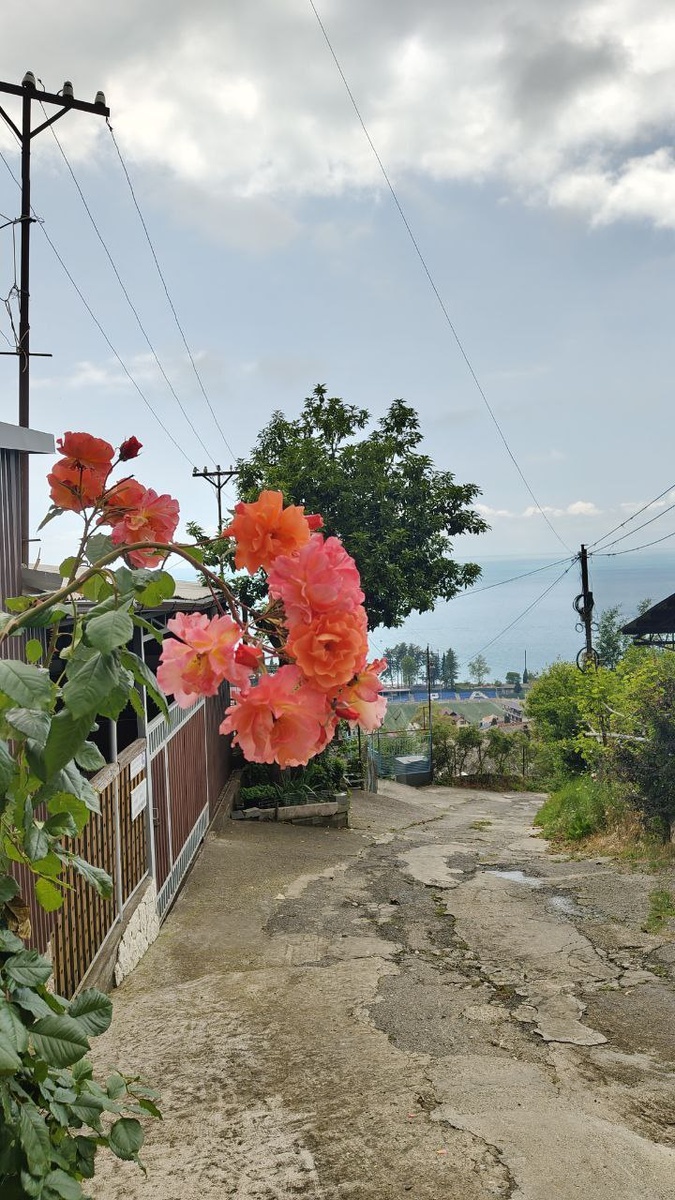 Прогуляемся по обычному частному сектору Гагры😍 Чего здесь только нет!!! Розы, ромашки, вьюны, уже появился фундук, цветет хурма, гранат.... Райский сад одним словом🌺 @mao_tour #гагра