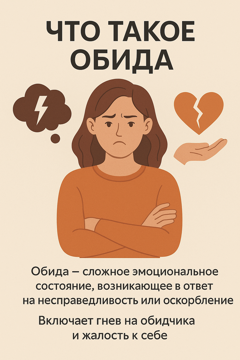 Итак, современная психология рассматривает обиду как сложную социальную эмоцию, возникающую в ответ на воспринимаемую несправедливость или оскорбление. В отличие от базовых эмоций (таких как гнев или страх), обида не считается врождённой: младенцы не умеют обижаться, они выражают прямой гнев, тогда как чувство обиды формируется позже, в раннем детстве.