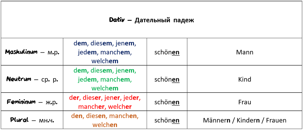 dem, diesem, jenem, jedem, manchem, welchem - ср.р.