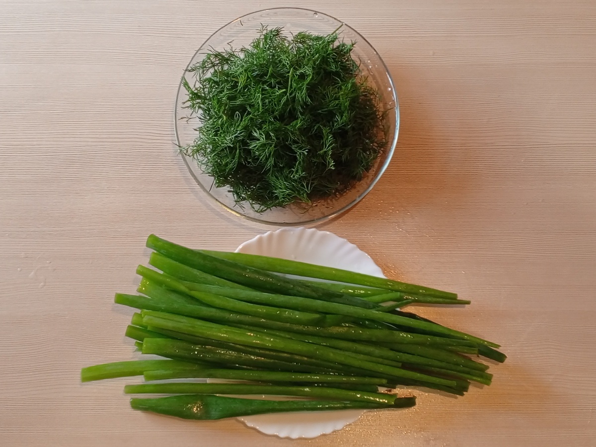 А почему окрошка называется окрошкой? Не задумывались? Оказывается, окрошка так называется от слова «крошево». Оно связано с тем, что все ингредиенты этого блюда мелко крошатся (режутся). Вот и мы, заселившись в туристический домик после жаркого дня, тут же принялись все крушить…, точнее, крошить! Уж очень выдался насыщенный и жаркий первый день нашей поездки. Приготавливаем все необходимое для окрошки: Зеленый лук (100-150 гр) Укроп (100-150 гр) Огурцы (300 гр) Колбаса вареная (300 гр) Отварной картофель (400 гр) Яйца (4 штуки) Сметана (по вкусу) Квас В первую очередь крошим зелень – режим зеленый лук и укроп, после чего перекладываем их в кастрюльку (или иную глубокую емкость), солим. Затем РАСТИРАЕМ нарезанную зелень – это так скажем «фишка» нашего рецепта. Делается это для того, чтобы блюду передалось больше аромата и сочности от зелени. Еще одна наша фишка в том, что огурцы для окрошки мы не режем, а трем на крупной терке. От этого, опять же, блюдо будет более сочным. А дальше все