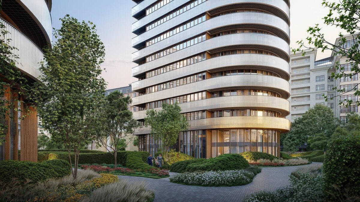 Π΄ΠΎΠΌΠΎΠ² Ρ ΡΠ°Π΄ΠΈΡΡΠ½ΡΠΌΠΈ β ΠΏΠΎΠ»ΡΠΊΡΡΠ³Π»ΡΠΌΠΈ β ΡΠ΅ΡΡΠ°ΡΠ°ΠΌΠΈ ΠΈ 13-ΡΡΠ°ΠΆΠ½ΠΎΠ³ΠΎ Π½Π΅ΠΎΠΊΠ»Π°ΡΡΠΈΡΠ΅ΡΠΊΠΎΠ³ΠΎ Π·Π΄Π°Π½ΠΈΡ, Π΄ΠΎΠΌΠΈΠ½Π°Π½ΡΡ ΡΠ»ΠΈΡΠ½ΠΎΠ³ΠΎ ΠΊΠ²Π°ΡΡΠ°Π»Π°. ΠΠ°Π²Π΅ΡΡΠΈΡΡ ΠΈΡ