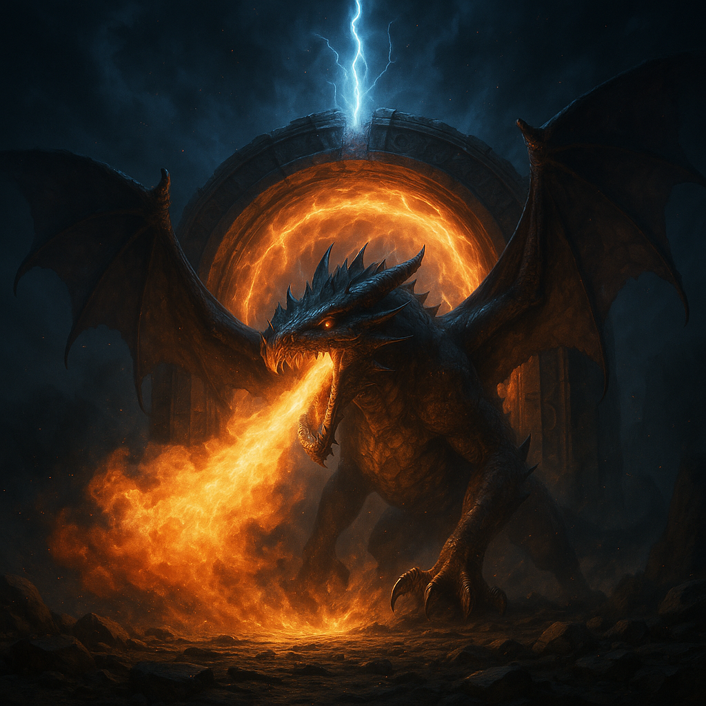 Первый дракон разорвал пространство ревом — этот звук не был похож на что-то звериное, он был напоминанием о древнем порядке, забытом и похороненном под слоями времени. Следом за ним из портала вырвались ещё четверо, каждый — воплощение первозданной стихии.