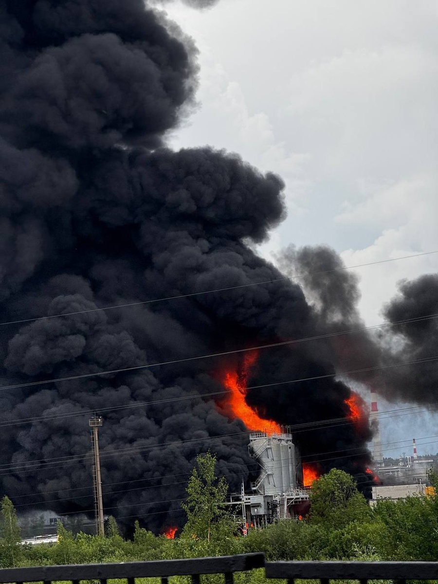 Пожар тушат в промзоне города Кстово Нижегородской области, горят емкости с битумом, произошел розлив битума на 100 квадратах, сообщает МЧС региона Сальное Дифлопэ