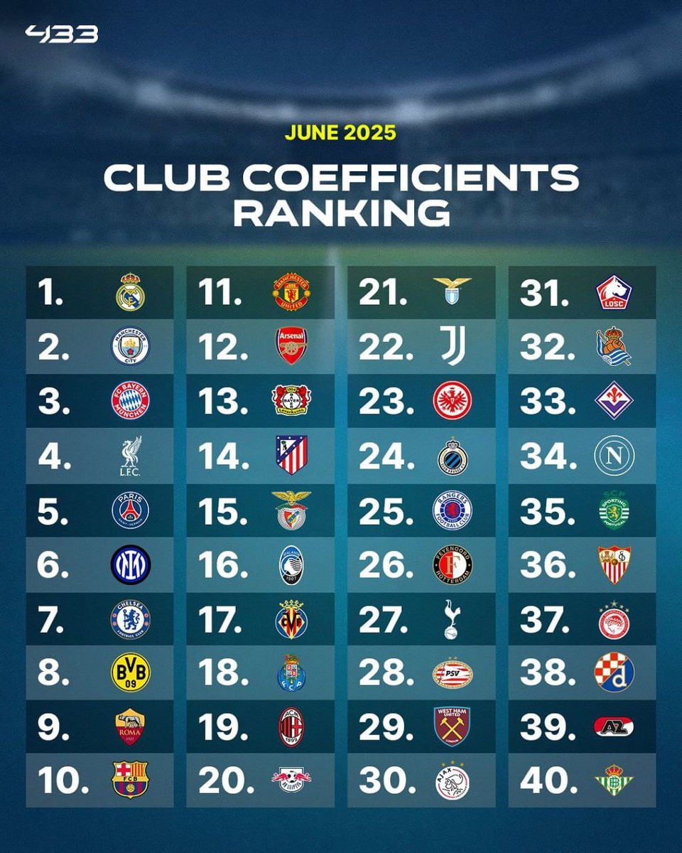 Топ-100 рейтинг клубного футбола на данный момент