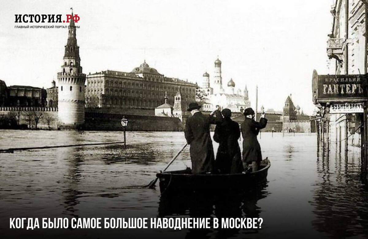 Первое из известных столичных наводнений было зафиксировано в 1496 году. Потом они регулярно повторялись, а наиболее крупные отмечались в московских хрониках. Особенно сильное наводнение случилось в 1908 году. Оно нам интересно и потому, что от тех событий осталась масса свидетельств, в том числе и в фотографиях. Все началось в Страстную пятницу, 11 апреля, и продолжалось до 13 апреля. Во время этого наводнения вода в реке поднялась на 8,9 метра и затопила пятую часть города. Несмотря на последствия, москвичи отнеслись к наводнению романтично, без трагизма. Кто был побогаче, даже нанимал лодки напрокат и катался среди затопленных зданий, садов и площадей. Подписаться на История.РФ