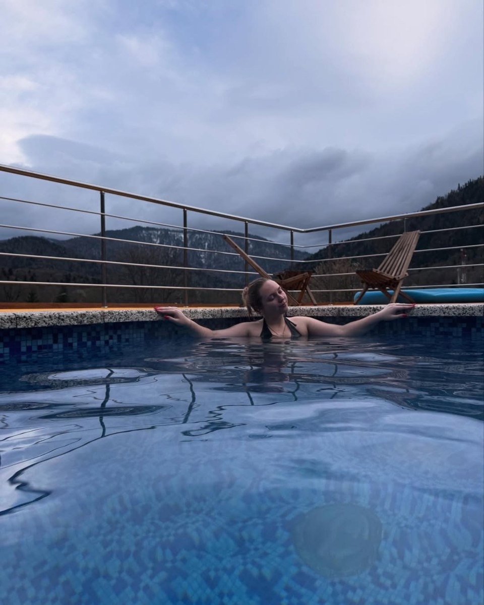 Впечатления нашего гостя: "Кайфули в бассейне, который находится на крыше отеля с шикарным видом на кавказские горы