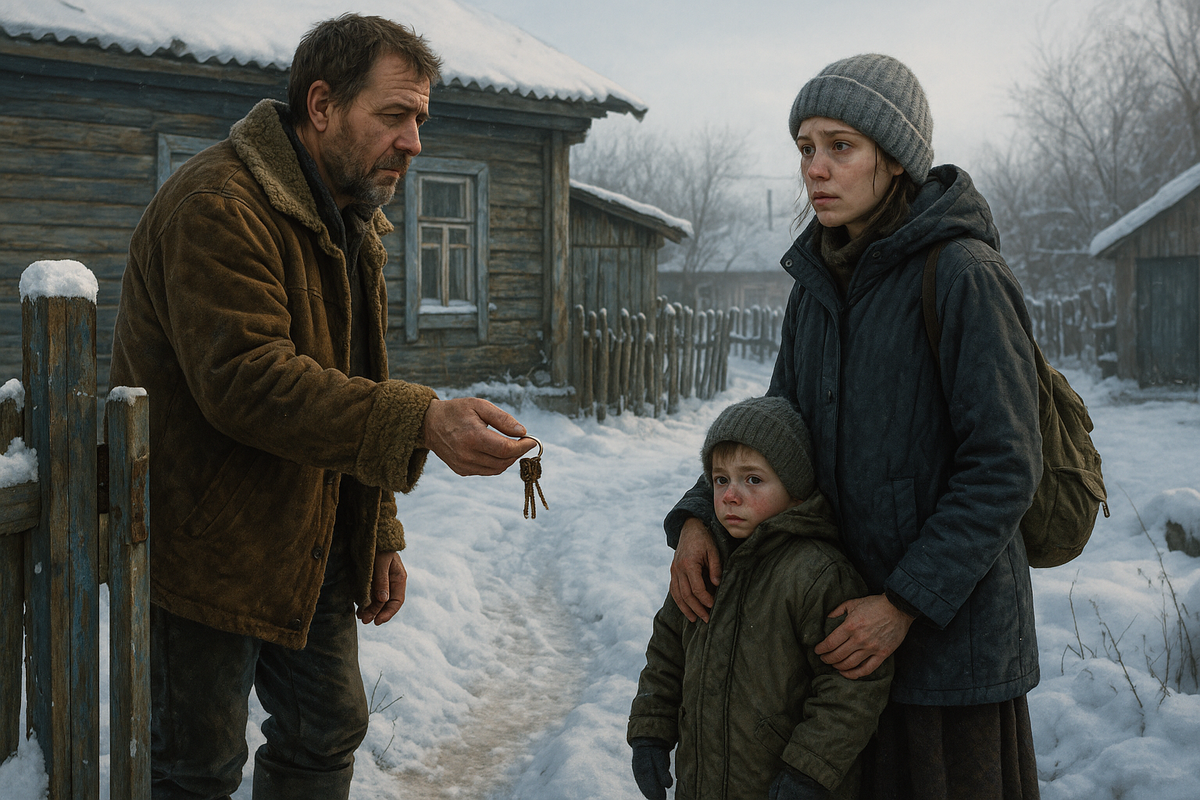 Женщина с ребёнком стояли у калитки. Не местные — это было видно сразу. Она худая, измученная, с тёмными кругами под глазами. Мальчишка лет пяти жался к её ноге, время от времени утирая замёрзший нос рукавом.