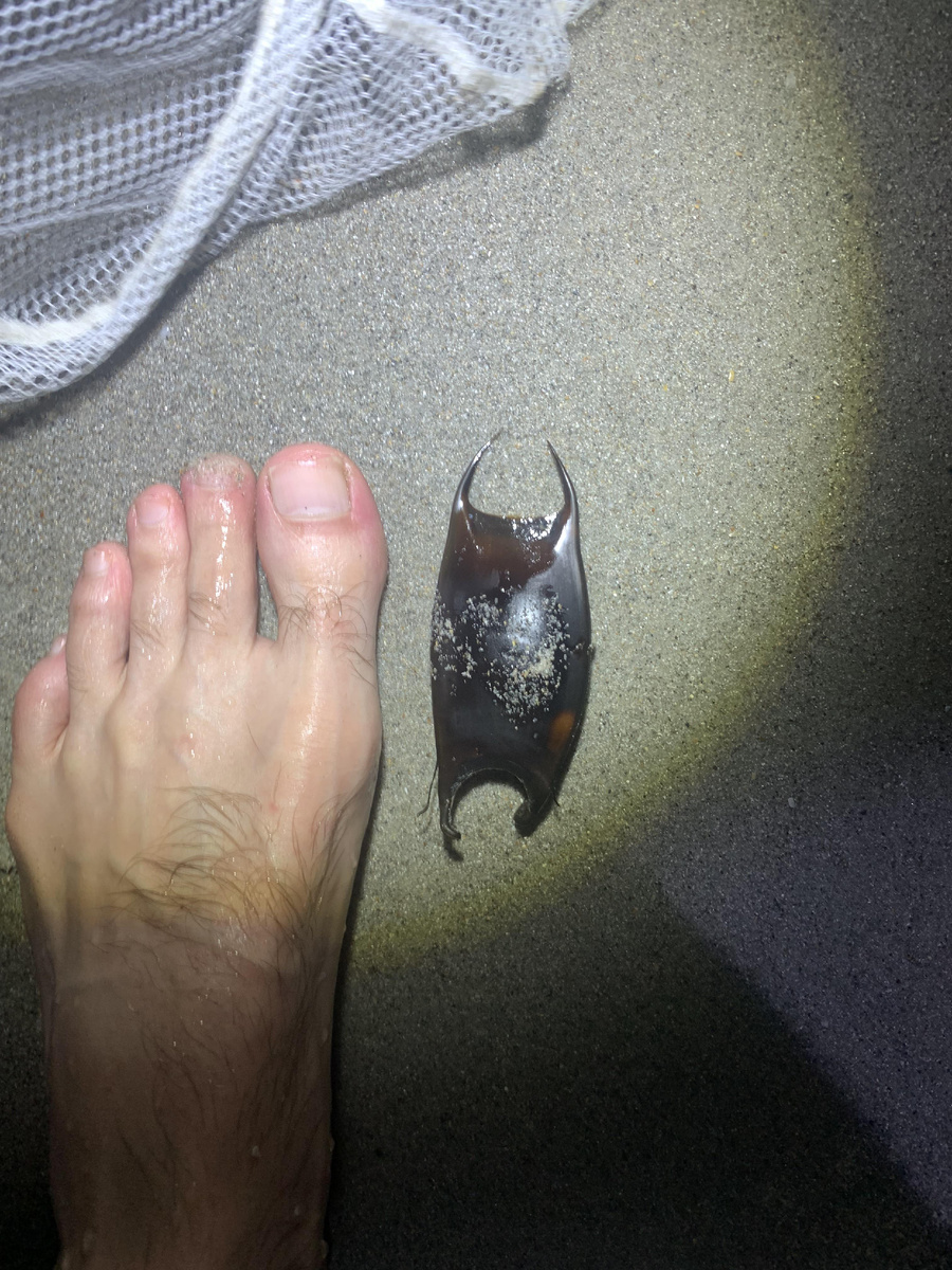 Совершая вечернюю прогулку на пляже Флориды, мужчина обнаружил странный черный мешочек, который плавал в воде рядом с побережьем. Мужчине показался он чем-то странным, даже похожим на инопланетную вещь. Мужчину этот мешочек сильно напугал и он решил узнать у пользователей интернета, что за штука. Этим странным предметом оказалось яйцо ската, которое в народе еще называют "Кошелёк русалки" или "Русалочья сумочка".