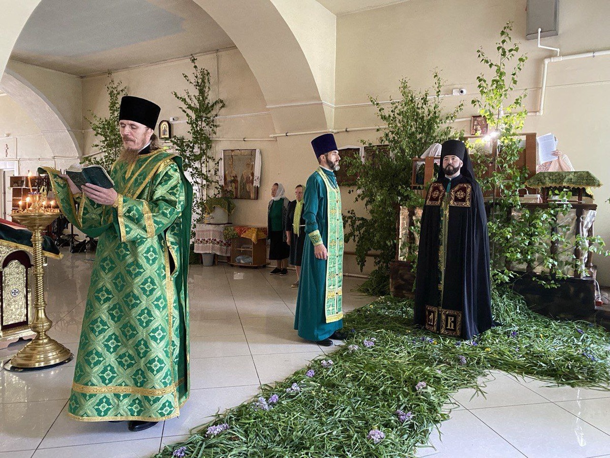 7 июня 2025 года, в канун Дня Святой Троицы, архимандрит Владимир (Дяченко), совершил Всенощное бдение в Введенском храме. Сослужили настоятелю иерей Михаил Войцешко и иеродиакон Николай (Плюснин). На великой вечерни – первой части праздничного богослужения – возгласили прославление Пресвятой Троице: «Слава Святей, и Единосущней, и Животворящей, и Нераздельней Троице всегда, ныне и присно, и во веки веков». Молитвенные песнопения, воспевающие непостижимую тайну сущности Триединого Божества, были исполнены певчими приходского хора. За богослужением были прочитаны паремии, содержащие ветхозаветные прообразовательные истины, указывающие на тайну сошествия Святого Духа – третьего Лица Пресвятой Троицы. В ходе великой вечерни, на литии, был совершен чин благословения хлебов, пшеницы, вина и елея. Также во время праздничной службы впервые после Великой Субботы Страстной седмицы, была торжественно и громогласно пропета молитва «Царю Небесный». В последовании центральной части Всенощ