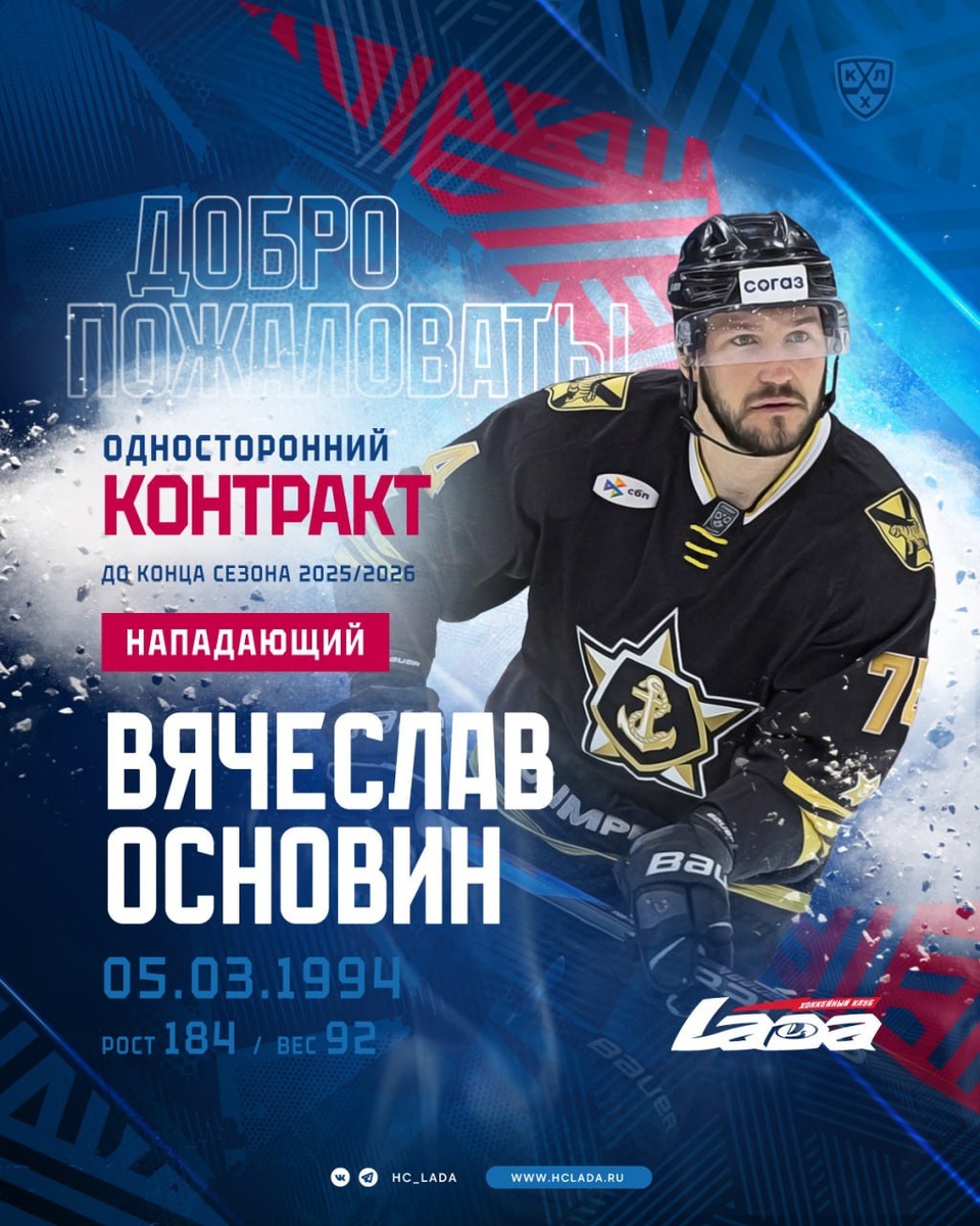 Тольяттинская «Лада» объявила о переходе нападающего «Адмирала» и вратаря АКМ Состав «Лады» пополнил Вячеслав Основин – с форвардом заключен односторонний контракт сроком на один сезон. В предыдущем сезоне Вячеслав защищал цвета «Адмирала» и провел за дальневосточную команду в общей сложности 50 игр, заработав 15 (9+6) очков при показателе полезности «+3». Еще в его активе две голевые передачи в четырех матчах за «Динамо-Алтай» в ВХЛ. 23-летний вратарь Денис Попов заключил двусторонний контракт, который рассчитан на один сезон. В прошедшем сезоне Денис являлся основным стражем ворот тульского АКМ и принял участие в 46 матчах регулярного чемпионата ВХЛ – в этих встречах он одержал 24 победы и отразил 91.4% бросков в створ при коэффициенте надежности 2.09, а также оформил три «сухаря». В мае Попов принимал участие в турне сборной «Россия 25». 📸ХК "Лада" @nhockey