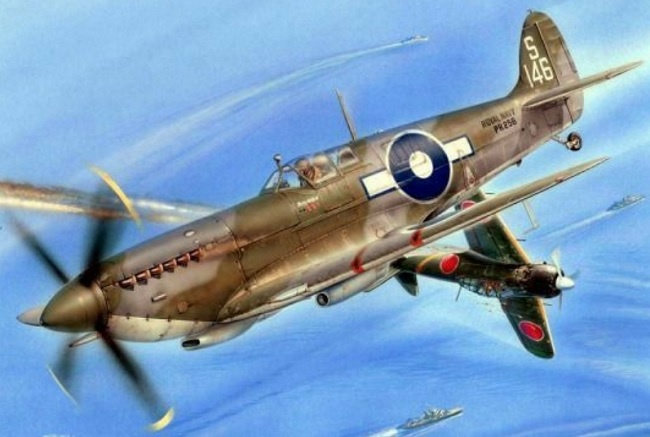 К весне победного 45-го, лучшая и большая часть британского «Восточного Флота», включая все пять эскадренных авианосцев, восполнила потери в самолётах, получила прозаический кодовый номер Task Force 57 и отправилась воевать поближе к Японии, за малоизвестный обывателю остров Окинаву. «Индефэтигебл» со своими неизменными двумя эскадрильями «Сифайров-Троек» естественно тоже был в деле. Никто, включая командующего, адмирала Виана, которому с Салерно от «водных Спитов» хорошо так икалось, особых иллюзий не строил, но выбора опять не было: высота верхнего ангара вышеупомянутого авианосца не позволяла разместить «Корсары» со сложенными крыльями (не влезали), а «Хеллкетов» с горизонтальным «складыванием» крыльев хронически не хватало, вот и пришлось «колоться, плакать, но завтракать кактусным пудингом».