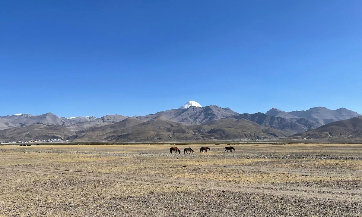 Посёлок Дарчен, откуда начинается поход вокруг Кайласа, за последние горы разросся в целый городок с кучей гостиниц, ресторанов и магазинов. На улочки Дарчена мы ещё вернёмся. Ибо не с того начались наши утренние мероприятия. Начались они с того, что мы поехали в маленький монастырь под названием Чиу, что значит, воробей. Дороги Тибета в этом месте настолько живописны и интересны, что сама по себе поездка уже отдельное приключение, насыщенное впечатлениями. Тут тебе и лошади, бредущие на фоне Кайласа. И стада яков, которые чуть не затоптали любопытных фотографов. И потрясающие дорожные виды на Кайлас и на гору Гурла Мандхата высотой 7694 м (я же знаю, вы обязательно спросите, что это за такая красивая снежная гора). И паломники, совершающие кору с простираниями – обход вокруг чего-нибудь священного. В данном случае – священного озера Маносаровар. А что такое простирания, вы сами можете увидеть. Представляете, сколько надо сил, чтобы вот так идти километр за километром.