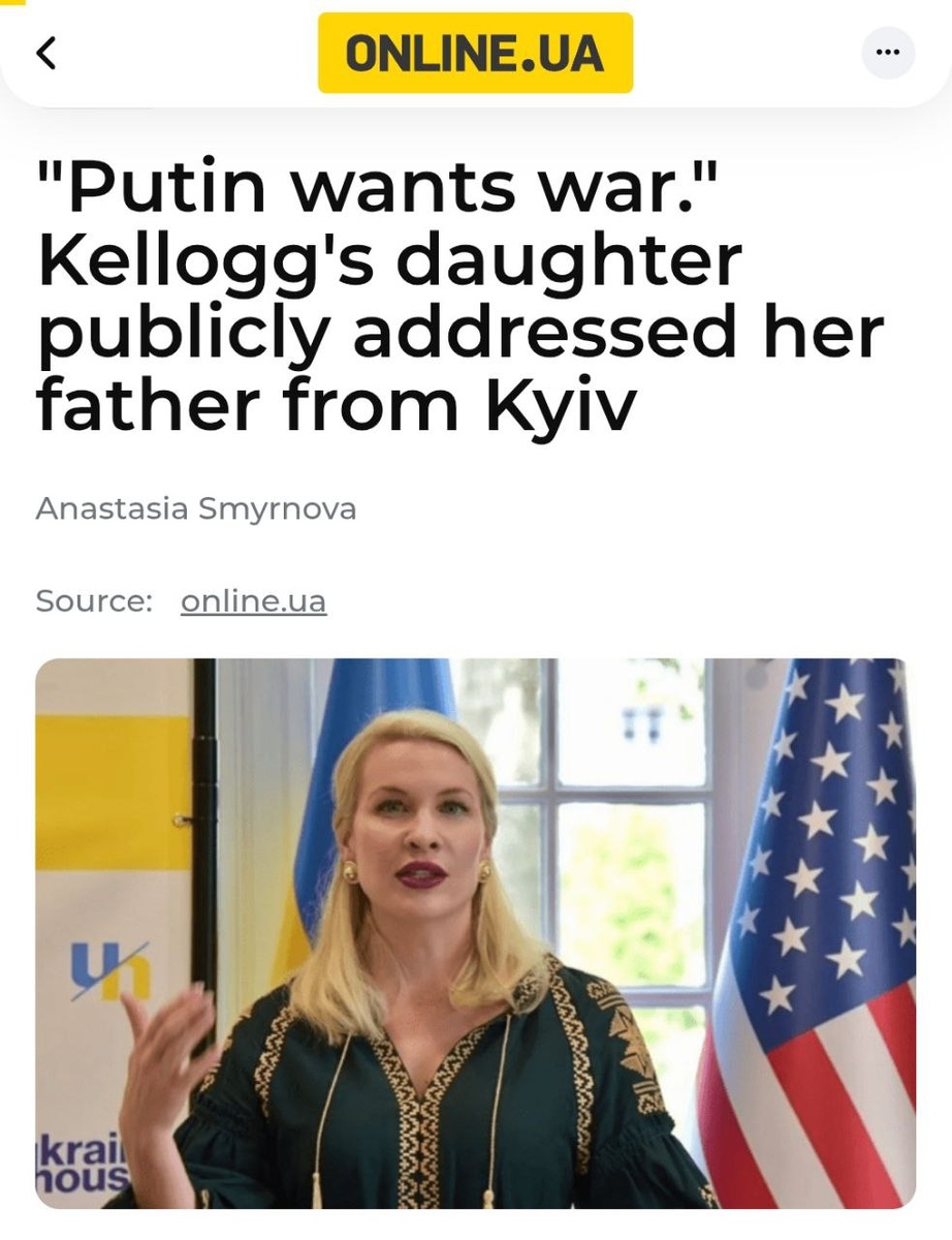 Looks like the daughter of Trump's Ukraine envoy at odds with her dad's push for peace 'I have a strange feeling that the Russians don't want peace' she says in post directed at Kellogg