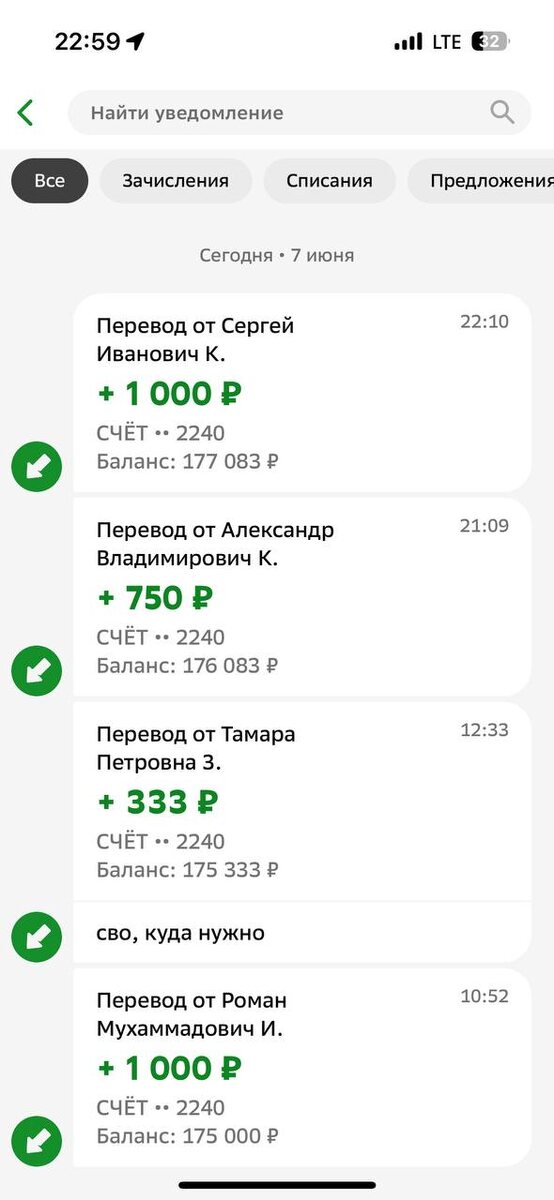 ОТЧЕТ О ПЕРЕВОДАХ ЗА 07.06.2025 г. 🔠 Роман Мухаммадович И + 1000 р 🔠 Тамара Петровна З + 333 р 🔠 Александр Владимирович К +750 р 🔠 Сергей Иванович К + 1000 р Друзья, Сердечное спасибо вам всем ❤️ вы наши неравнодушные помощники с добрыми сердцами ❤️❤️❤️ Благодаря вам - нашим воинам будет немного по легче выполнять боевые задачи🙏 Потому, что вся помощь оказанная волонтерами и всеми кто не останется в стороне - не только гуманитарная, но и моральная поддержка наших самых лучших воинов в мире!