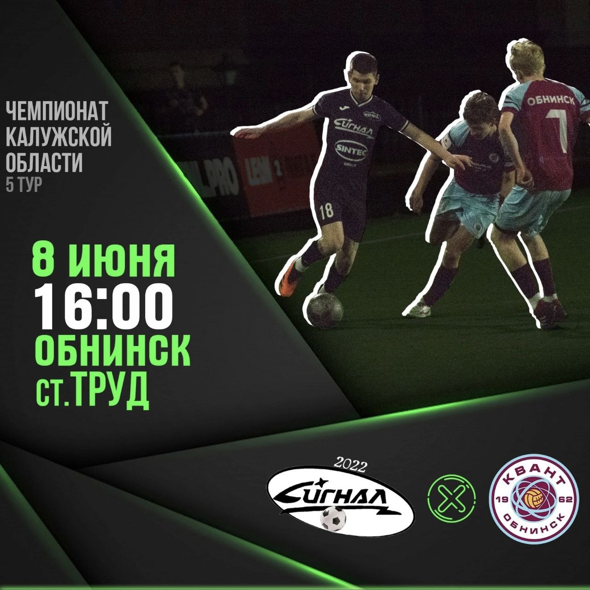 5 тур чемпионата Калужской Области. Встречается Обнинский "Сигнал" и Квант (молодёжный состав). Начало игры 16:00