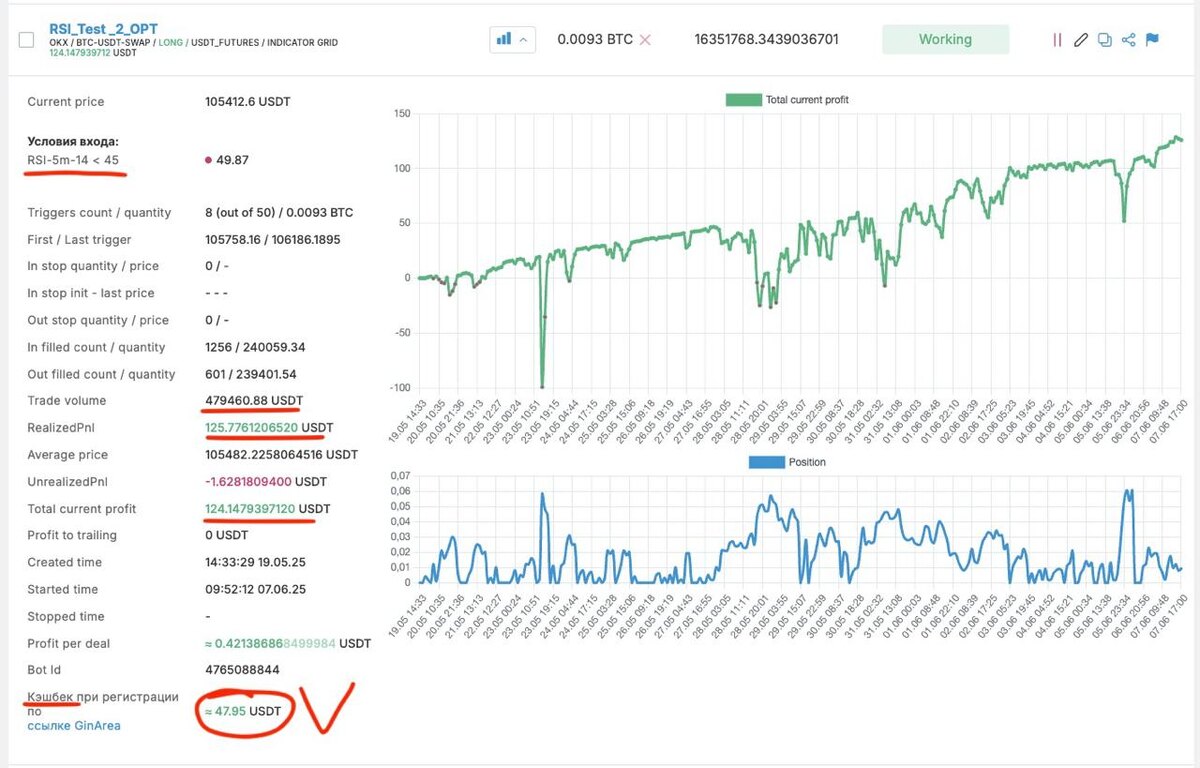 ❗️Чтобы пользоваться режимом PRO на GinArea регистрируйтесь по моей партнерской ссылке на OKX c возвратом комиссии 20%: ✅ https://www.okx.com/join/MAY20 Регистрация на GinArea: ✅ https://ginarea.org?r=CRYPTONOMOS Обратите внимание на скрин, бот заработал $125 за 2 недели + кешбэком $48 - за 2 недели с минимальными настройками по BTC Если вы не знаете, по какой реф ссылке вы регистрировались, попробуйте написать со своей почты (на которую зарегистрирован аккаунт OKX) письмо: Кому: affiliates@okx.com Копия: tim.mamedov@okx.com Тема: OKX Account Rebind Request Hello, I’d like to rebind my OKX account to Evgeniy May, CID: 16604422 Reason: I want to participate in affiliate-exclusive campaigns. My UID: ___________________ Looking forward to your response. Thank you! Best regards, Имя Поставьте свой UID Если вы не регистрировались под кем то, то возможно получится - ждем автоматизацию этого процесса Если уже под кем то, то надо регить новый аккаунт, если удалять старый, то
