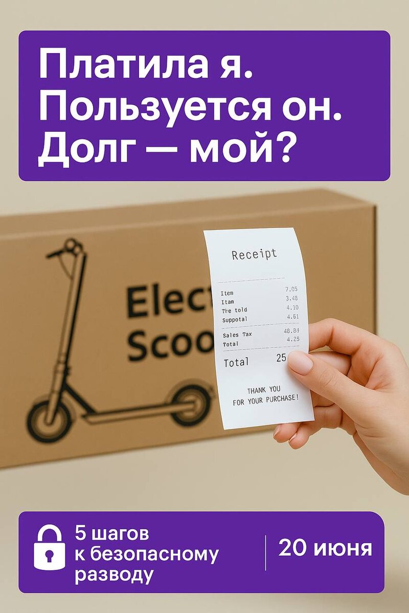💳 «Кредит был на меня. А купили мы ему PlayStation и газонокосилку». Многие женщины после развода остаются: – без части имущества, – но с полным долгом. И всё потому, что: ❌ «Карта оформлена на меня» ❌ «Я заказывала, я платила» ❌ «Он сказал, что потом вернёт» 👉 А вернул ли? ⸻ 📌 Важно знать: Всё, что покупается в браке — общее. И имущество, и долги по кредитке, если они пошли на нужды семьи, — тоже общие. ⠀ 📉 Но если не зафиксировать, на что именно ушли деньги — суд оставит весь долг тебе. А купленные вещи могут быть… его. ⸻ 🧠 Как не остаться с долгами и без вещей? ✅ Как защитить себя заранее, пока всё не пошло вразнос? ✅ Как правильно оформлять семейные расходы, даже если вы «всё делаете вместе»? Об этом говорим на бесплатном марафоне: ⸻ 🔐 5 шагов к безопасному разводу Старт: 20 июня 2025 📌 Для тех, кто: – думает о разводе – уже в процессе – не хочет остаться без защиты 🟢 Участие бесплатное. ✍️ Ставь + под постом или напиши мне в личку @OlgaRogachevaSPb и я добавлю