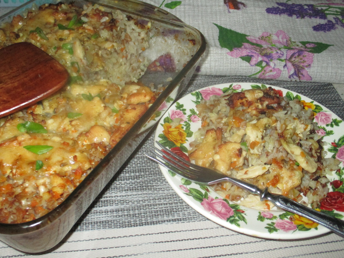 Решила приготовить запеканку с двумя видами круп и куриной грудкой. Блюдо получилось сытным и вкусным. Время приготовления: чуть больше одного часа. Куриную грудку промываем и нарезаем на небольшие кусочки, отвариваем ее в воде 5 минут. Затем обжариваем на растительном масле порезанные репчатый лук и морковь. Промываем рис и гречневую крупу, кладем их в кастрюлю. Добавляем в кастрюлю обжаренные лук с морковью и куриную грудку, все перемешиваем. Теперь всю массу из кастрюли выкладываем в емкость для запекания, наливаем воду. Добавляем соль, специи и ставим в разогретую духовку запекаться при температуре 160-170°C на 40-50 минут. Крупа впитает в себя воду, и запеканка будет готова. Но чтобы запеканка получилась еще вкуснее, вынимаем ее из духовки и кладем сверху натертый сыр. Отправляем ее на 5 минут в духовку. Сыр расплавится и придаст запеканке золотистую корочку. Достаем из духовки запеканку и сверху кладем немного порезанного зеленого лука. Даем запеканке немного остыть и нарезаем.