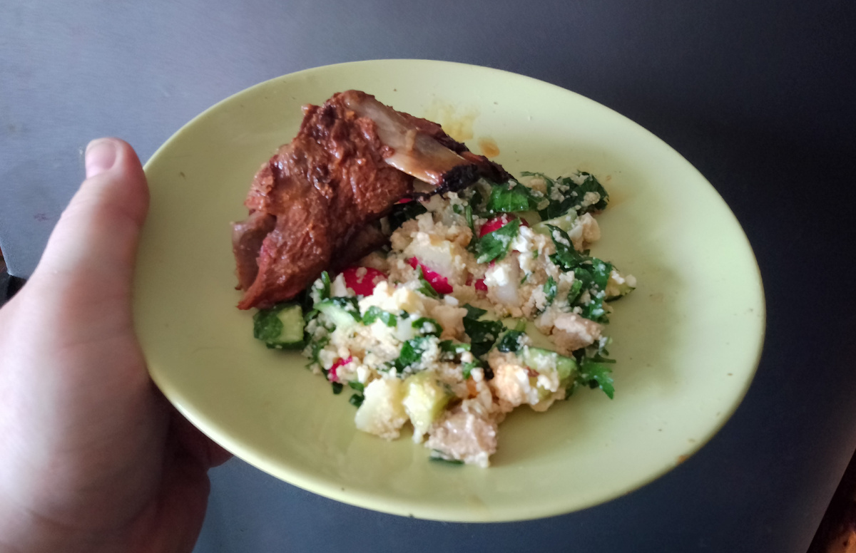 В эфире снова моя редкая мерцающая рубрика "Кухня от балды: готовим без рецептов", где я рассказываю, чем питаются хозяева 15 кошек и трёх собак (и вообще ещё питаются ли). На самом деле этот салат придумал мой муж. Хотя, если честно, изобретением салатов у нас дома занимаются все и постоянно, мы их очень любим. Салат это же прекрасный гарнир к мясу и рыбе и ещё это идеальное самостоятельное блюдо-конструктор, а по принципу конструктора мы в основном и питаемся: простые взаимозаменяемые и по возможности полезные ингредиенты, свободные пропорции (и порции). В общем настоящая кухня от балды. Но для меня лично салат это прежде всего овощи. Причём, доступные и сезонные. Например, летом огурцы, помидоры, перец, много зелени, осенью и зимой тыква, морковка, свёкла, весной редька и редиска. И в идеале к овощам должен быть добавлен белок и полезное масло. Вот, на мой взгляд, Женин салатик как раз отвечает всем основным требованиям. А ещё он очень вкусный, сытный, без пищевого мусора и лиш