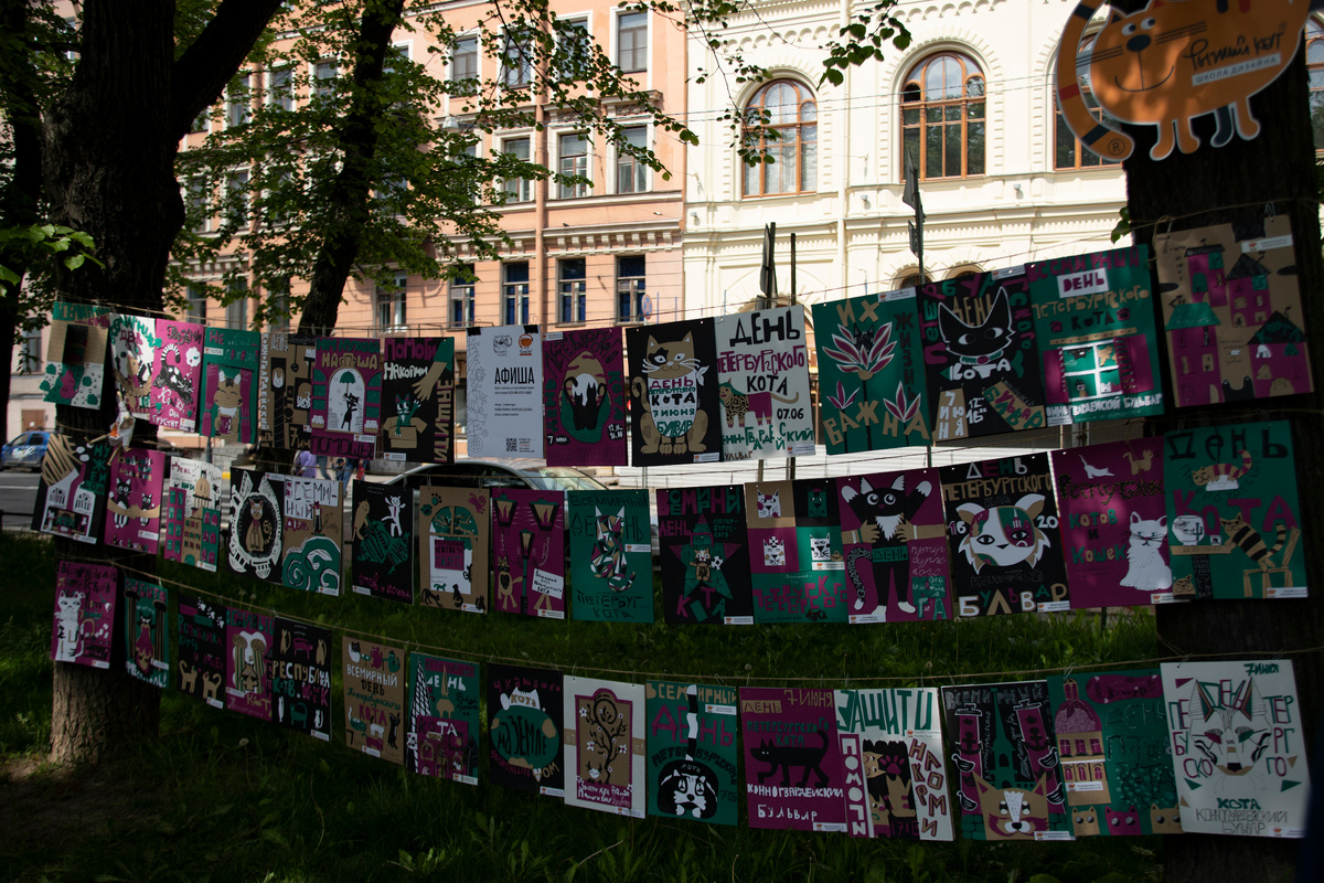 Фестивалями собак меня не удивишь - я фотографировала и парад такс, и фестиваль коржей, и даже фокс-терьеров... А вот котов ни разу (если не считать моего Колобка и хозяев улиц). А потому фестиваль Петербургских котов я пропустить не могла. Расположился фестиваль очень удобно - на Конногвардейском бульваре. На пешеходной аллее в тени деревьев поставили палатки и столы, где расположились герои праздника со своими хозяевами, мастер-классы, информационные точки и даже сцена. На информационных стендах можно было взять брошюры по воспитанию кошек и их хозяев, получить полезную информацию и прочее, прочее... На мастер-классах дети всех возрастов могли создать свое печенье, слепить фигурку кота, раскрасить магнит с котиками, попробовать себя в аппликации и рисовании и многом другом. Часть этих мастер-классов были бесплатны, за некоторые нужно было заплатить или доплатить, но обычно цена примерно соответствовала стоимости расходников. На сцене выступали детские коллективы, а после выступле