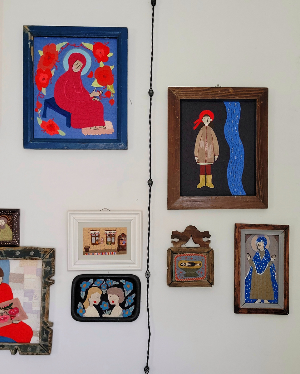 «Калуга вся такая холмистая — то вверх, то вниз. И по весне с холмов сильные ручьи. Помню в детстве — идёшь специально вверх и следишь за этим ручьём, пускаешь в него кораблики, листики, палочки. А на голове шарф — мама всегда так завязывала, чтобы уши закрывал, потому что шапки я не любила. Ну и вот это я у ручья...» ...в руках свою работу и рассказывает о ней. А я ещё не знаю, что упустила «Ручей» — хотела купить, да опоздала. Но пока просто любуюсь вышивкой и её автором. Вера Керинская из тех людей, от которых не отвести взгляд. Живая, настоящая, кайфовая. Без какой-либо искусственности вообще. И мы болтаем — будто знакомы 100 лет. ...манили в Калугу — вот ссылка на статью. Как только поездка замаячила на горизонте, сразу вспомнила про Веру и её мастерскую — давно хотела попасть в гости. И мы лихо договорились — вжух, и вот я уже стою у старой кирхи, смотрю на стрельчатые окошки, которые до этого видела много раз на фотках, а из дверей выходит сама художница. ...мы с ними шили лоску