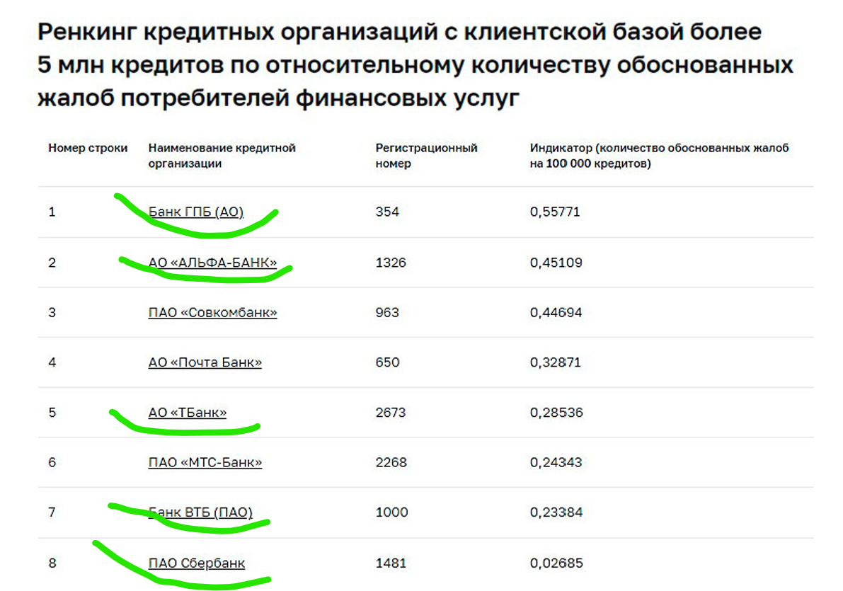А еще в антирейтинге — только те, кто обслужил больше 5 миллионов кредитных договоров, то есть крупные банки.