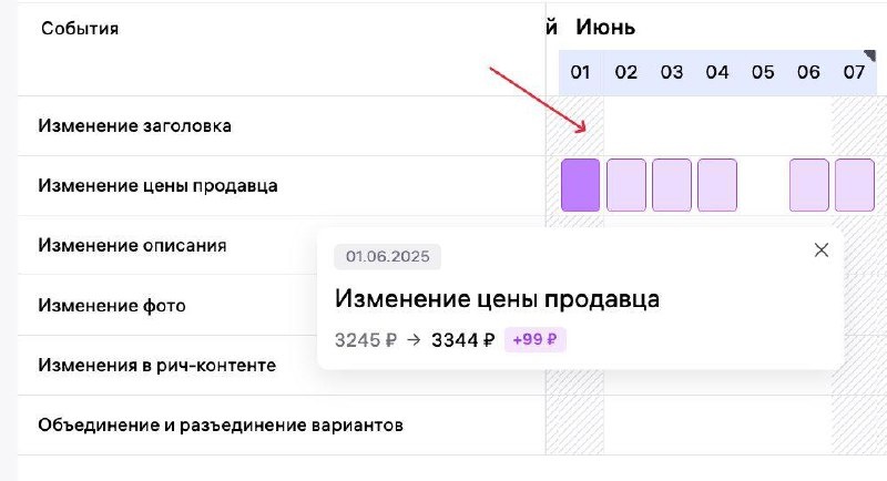 🔺Как выглядит календарь событий любого моего товара на МП в последнюю неделю)