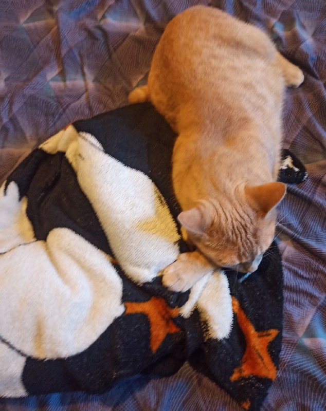 Бабушка и ее внучка приехали к нам ранним утром. Сашка уже был на даче, а мы с котом успели известись, пока ждали. Но доехали они хорошо, встретили мы их радушно, немного поболтали и по причине раннего времени, еще и шести не было, решили немного вздремнуть. Но не успела бабушка и до спальни дойти, как на кровати уже нарисовался кот. Занял он примерно три четверти, чтобы на краешек аккурат поместилась бабушка. А всяким там ейным внучкам места уже не осталось. -Скизи, ну ты не мог бы чуть-чуть подвинуться. - попросила бабушка за внучку. -Ууууу.- недовольно прогудел кот. И чуть-чуть сдвинул лапу. -Скизи, ну давай дорогой, ляг вдоль, а не поперек. - уговаривала бабушка. -Уруру ррр. - Скизи сдвинул хвост на два сантиметра. Потом подумал и вернул на сантиметр обратно. Бабушка бабушкой, но меру знаете ли тоже надо знать. -Скизи!!- вмешалась Варя, - немедленно подвинься!! И еще ногой топнула. Скизи посмотрел на нее, как на какого-то жука. Варя даже замолчала. Так-то у ребенка кризис веры н