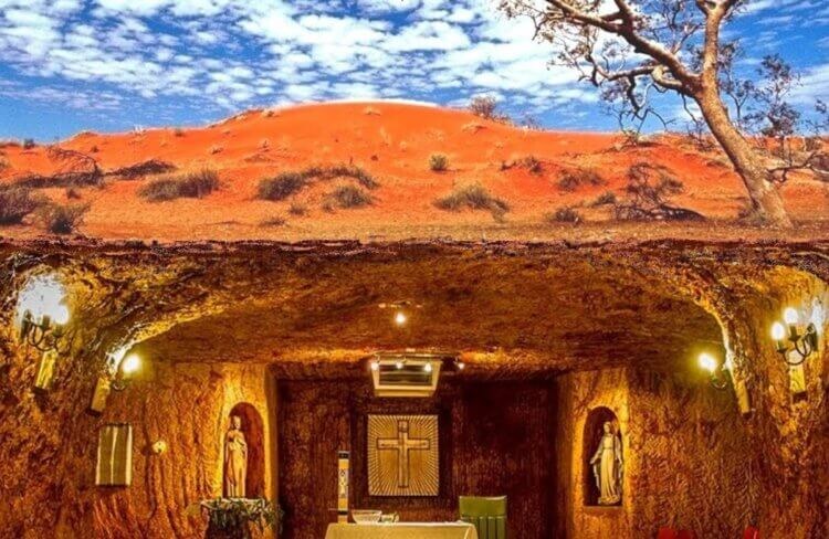 Кубер-Педи, Австралия Уникальный город, где жители живут под землей, чтобы избежать жары. Это место славится своими опалами и необычной архитектурой. #Открой_Неизвестное