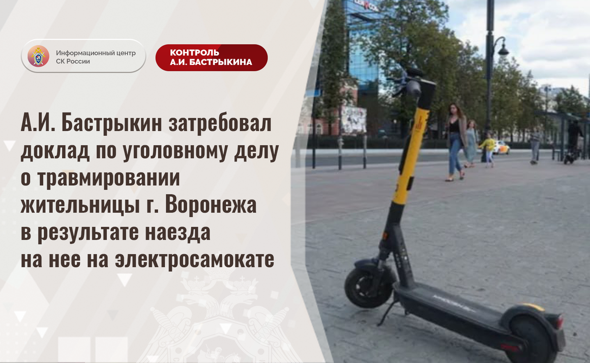 А.И. Бастрыкин затребовал доклад по уголовному делу о травмировании жительницы г. Воронежа в результате наезда на нее на электросамокате