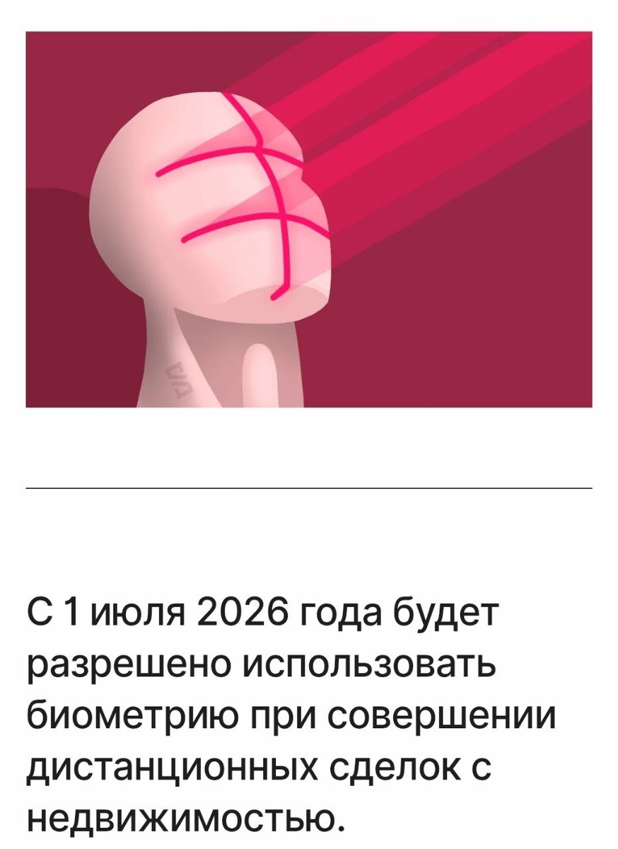 ☄️Не могу не отметить важность этой новости: С 1июля 2026 года, все, кто дал доступ к биометрии, смогут воспользоваться услугой регистрации сделок с недвижимостью БЕЗ ПРЕДВАРИТЕЛЬНОГО на то согласия. Подробнее Здесь. Порадовались или огорчились, только по честному...? Напишите в комментариях.
