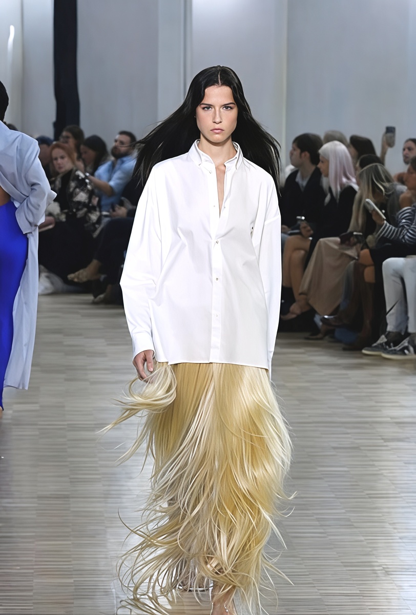 «Это что за парик на юбке?» — вслух недоумевает женщина, остановившись у витрины. И правда, с первого взгляда не поймёшь — то ли дизайнер с ума сошёл, то ли это и есть та самая бахрома, о которой все говорят.